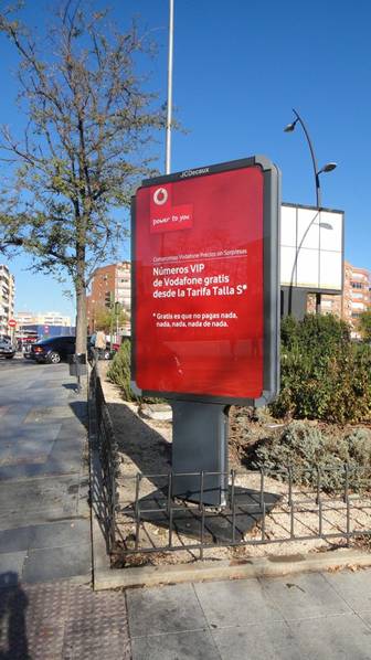 Desde la calle se lee sólo la publicidad de VODAFONE.